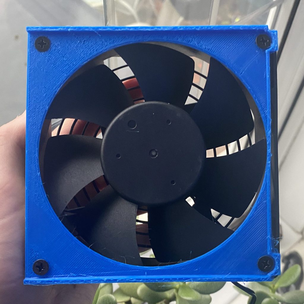 one of two 120mm fans that provides the wind in the wind tunnel. this fan moves 5000 liters of air a minute.